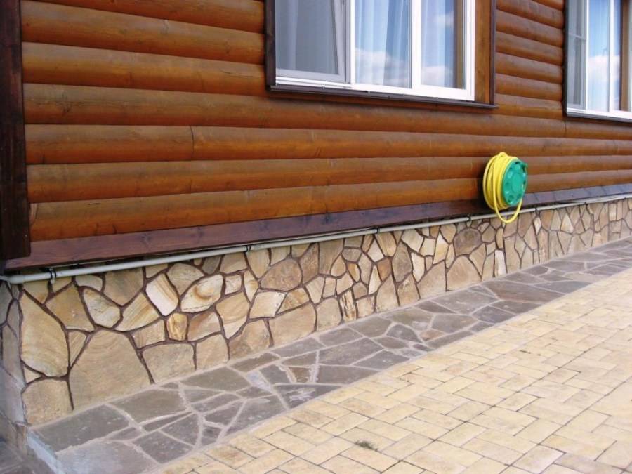 Для оформления цоколя можно выбрать так же природный камень. Как правило, это песчаник. Цена его не велика, укладка и ремонт просты и приемлемы даже к самостоятельным формам работы. Если использовать правильный раствор при укладке, то такой цоколь прослужит долгое время. Этот вариант оформления подойдет для домов с архитектурой средневековья, для домиков каменной кладки. Пожалуй, главным недостатком песчаника является цвет. Тут ни фантазия не поможет, ни творчество.