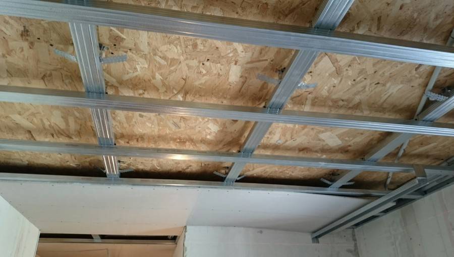 Если в частном доме бетонный потолок, обшивают его металлическими рейками, панелями или гипсокартоном.