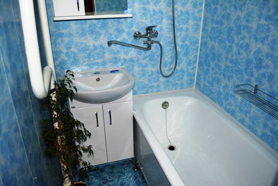 Вариант считается самым практичным и не дорогостоящим. Отделка ванной ПВХ панелями позволит сэкономить денежные средства и сделать быстро ремонт. Преимущества такого материала: