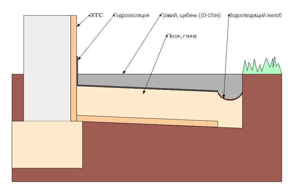 При формировании отмостки внимание уделяется дренажу и гидроизоляции. Вода должна отходить от фундамента, а не скапливаться в слоях грунта возле него