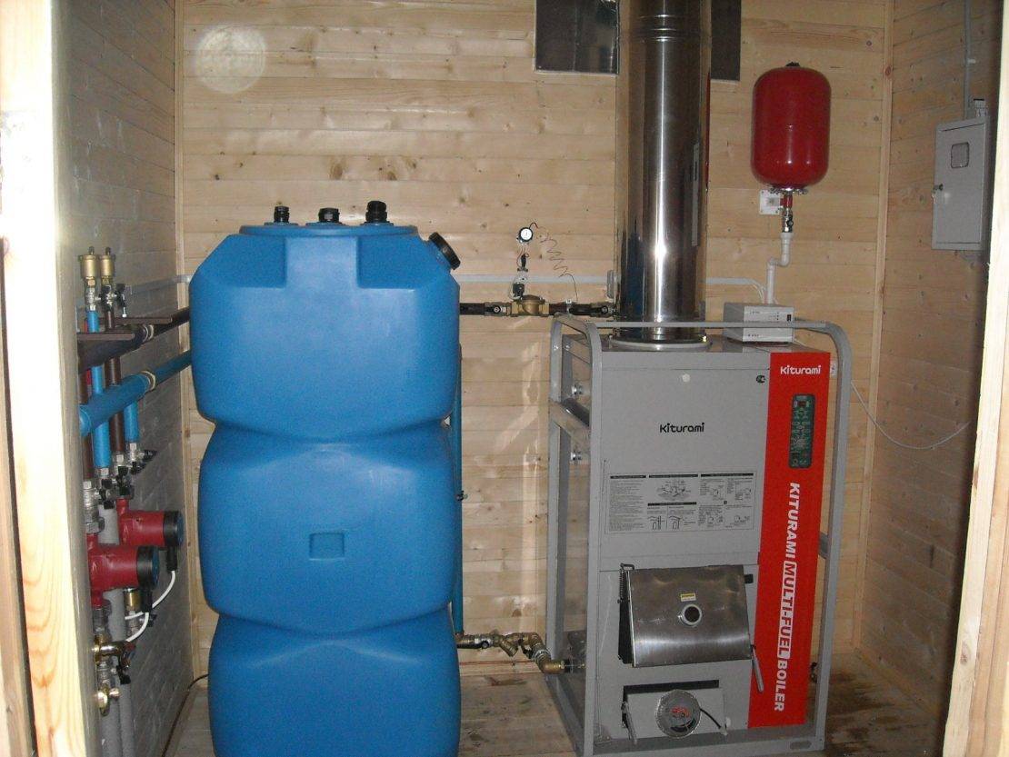 - для постоянной подачи энергоносителя нужно оборудовать специальную емкость и присоединить ее к котлу;