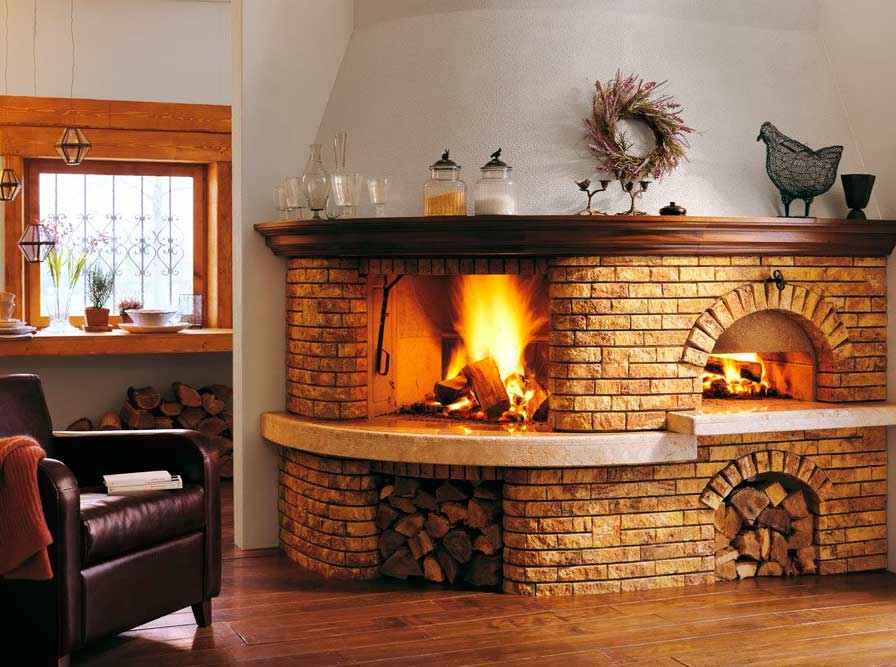 Такие отопительные устройства долго и равномерно отдают тепло. При желании в них размещаются объёмные духовые камеры, но они долго разогреваются. Для кладки конструкции придётся искать специалиста.