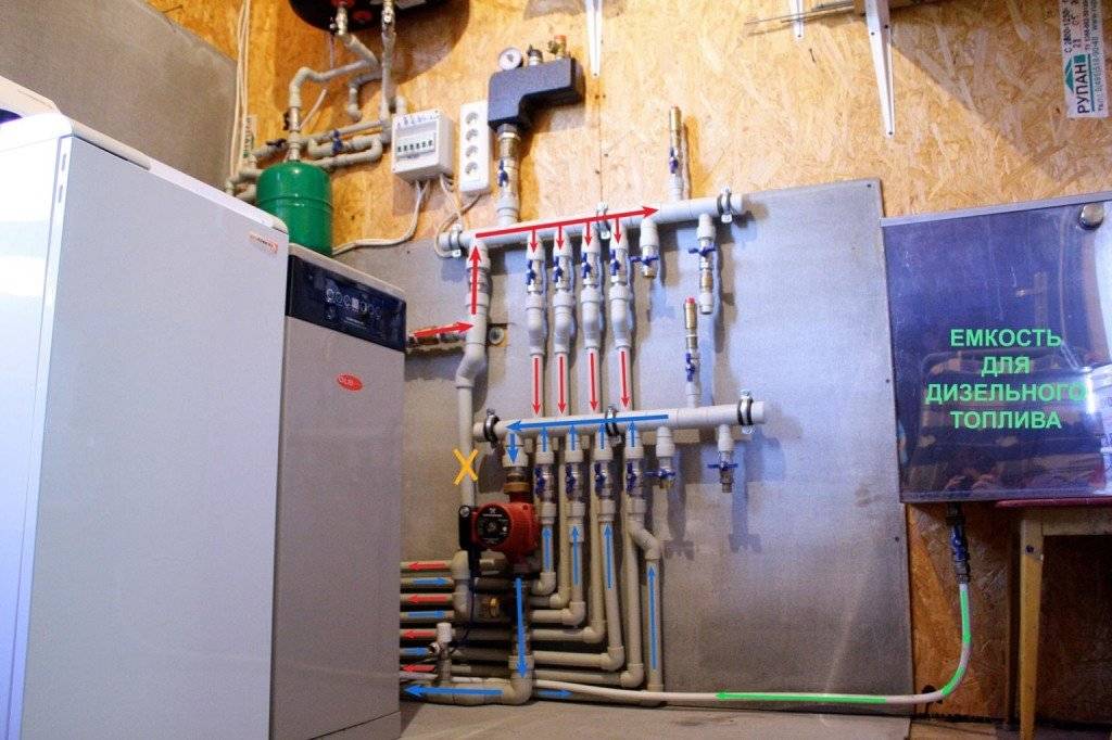 коллектора, которое собирает теплоноситель и распределяет по трубам к батареям.