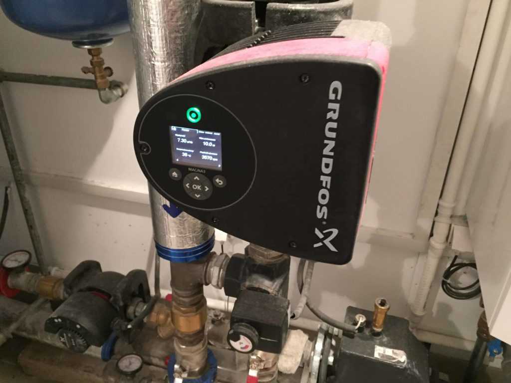 Установка циркуляционного насоса позволяет регулировать скорость продвижения теплоносителя по трубам. Чем активнее движется теплоноситель, тем больше тепла он разносит, а значит, помещение нагревается быстрее. После того, как заданная температура достигнута (отслеживается или степень нагрева теплоносителя или воздуха в помещении в зависимости от возможностей котла и/или настроек), задача меняется – требуется поддерживать заданную температуру и скорость потока уменьшается.