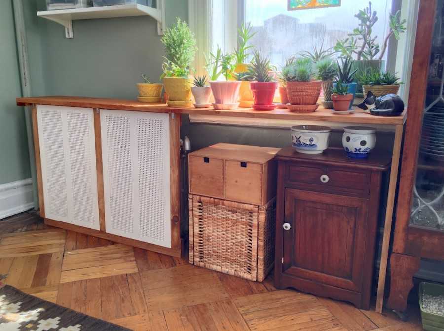 Оригинальный способ маскировки батареи отопления поможет расширить подоконник и использовать конструкцию в качестве предмета обстановки.