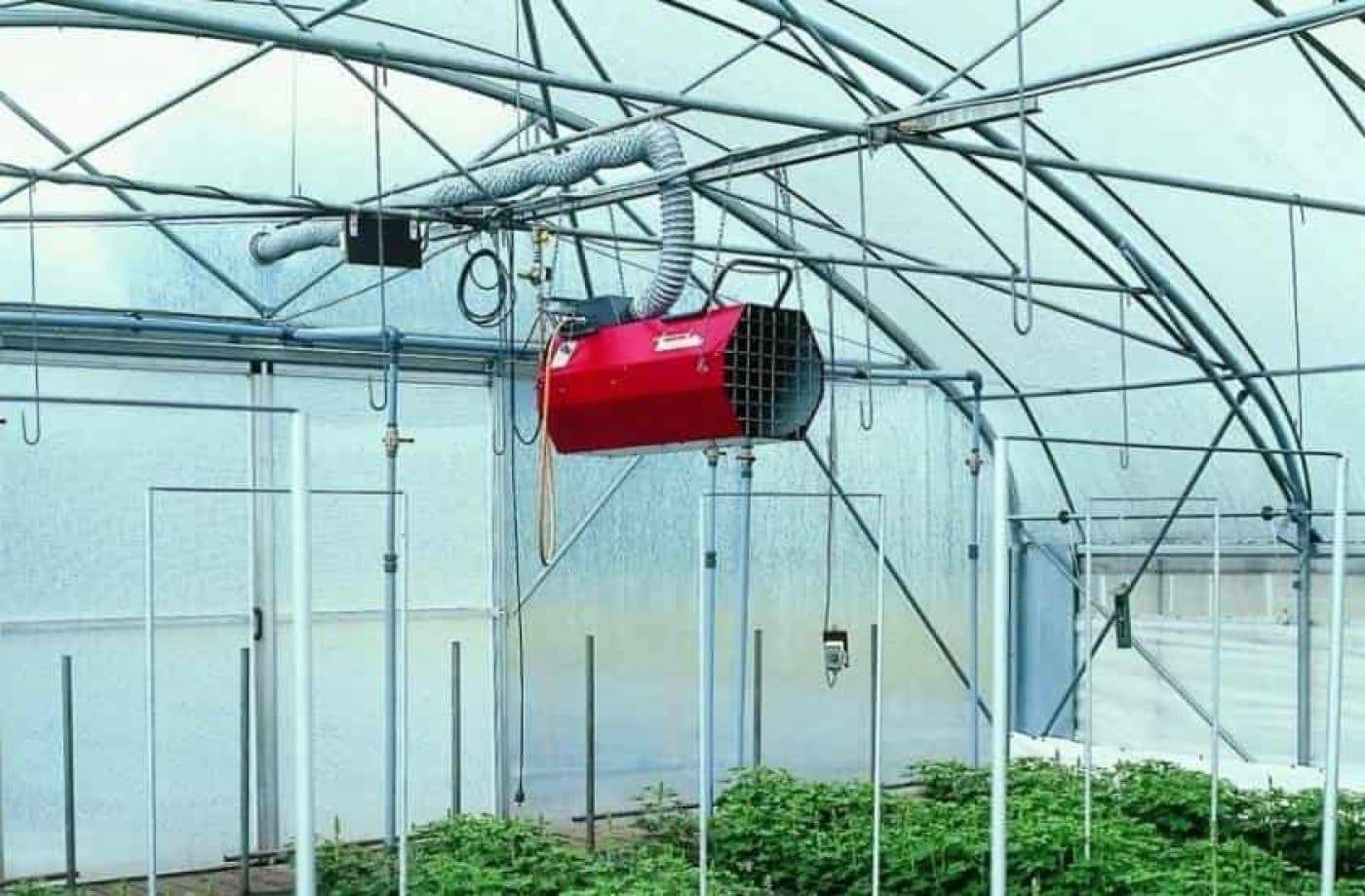 В этом случае воздушное отопление — профессиональная система, в которой взаимосвязана каждая деталь. Приглашенные монтажники используют фундамент, стойки и само основание теплицы для установки вентиляционных агрегатов. Именно они и прогревают общую площадь равномерно и достаточно.