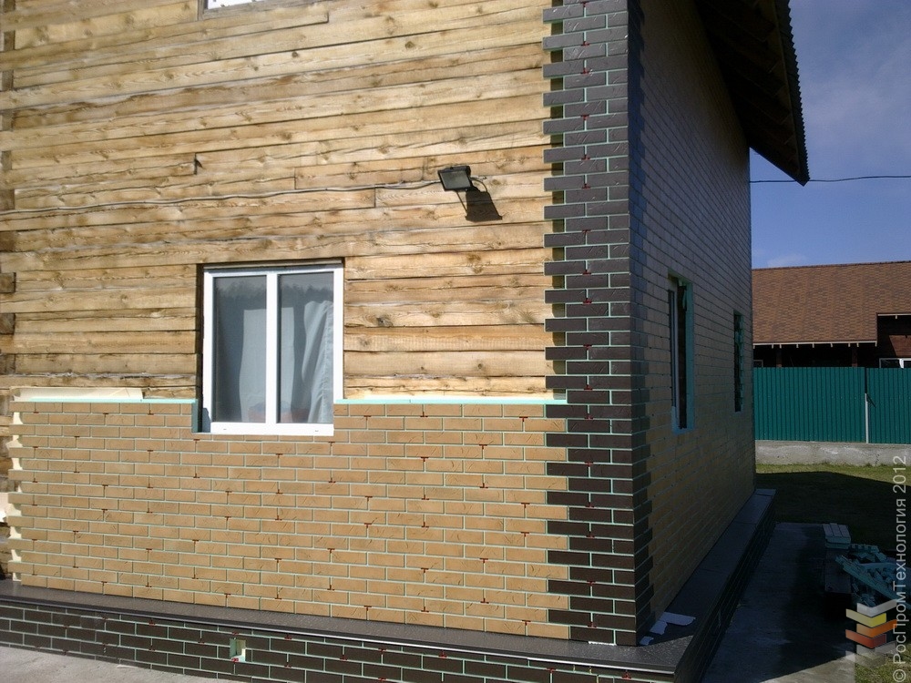 Стены, возведённые из добротного толстого бревна, или клееного бруса, и хорошо проконопаченные, не нуждаются ни в усилении, ни в дополнительном утеплении, ни даже в дополнительной отделке. К тому же, кирпич является холодным материалом, что может спровоцировать образование на нём конденсата. Дерево начнёт мокнуть за счёт скопления паров, которые попадают под облицовку не снаружи, а изнутри дома – и, соответственно гнить.