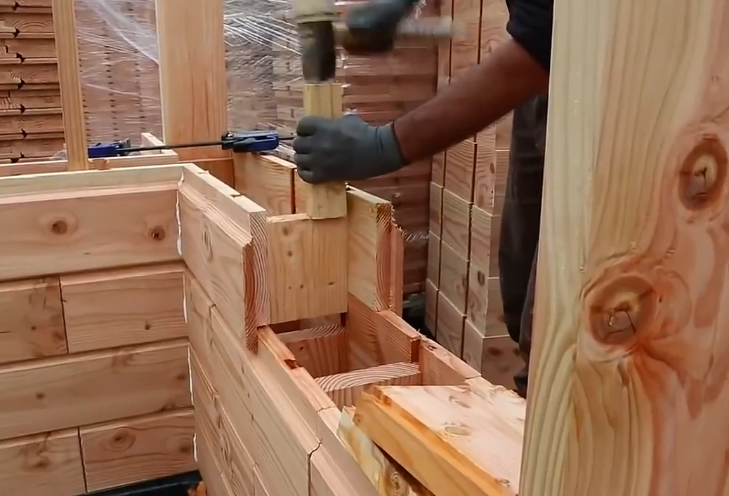 Чтобы возвести дом из деревянных блоков, будет достаточно группы из трех человек. Приглашать профессиональные бригады, работающие на стройках, не обязательно.