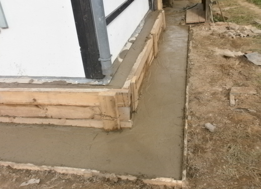 Это очень удобно, так как для того, чтобы поверхностная влага не контактировала со стенами дома, или, если фундамент свайный не застаивалась под ним — отмостка всё равно нужна. Да и ландшафт приусадебного участка значительно выигрывает, когда вокруг дома есть красивая отмостка.