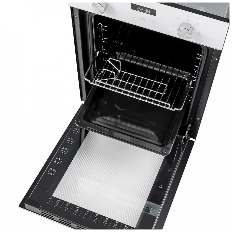 Вместимость рабочей камеры составляет целых 45 литров и будет вполне достаточна для семьи из 2-3 человек. Конечно, для большого разнообразия блюд данного устройства будет маловато, но для традиционных вполне сойдет. Управление в Simfer B4EM36001 электронное и осуществляется утапливаемыми переключателями и механическими кнопками, а на цифровом дисплее отображается время, настройки таймера и программатора.