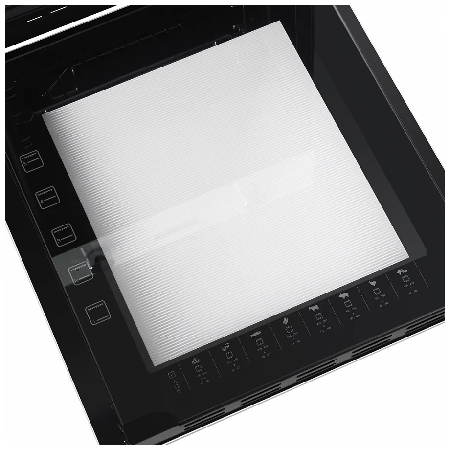 Дверцы из двойного стекла лучше сохраняют тепло внутри электропечи и меньше нагреваются. Края дверцы также оснащены теплоизоляцией в виде специальной прокладки. Это обеспечивает дополнительную безопасность во время готовки.