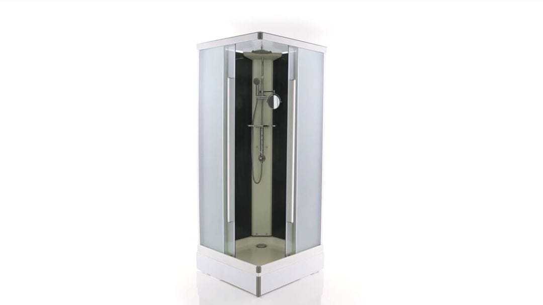 Это может быть простая душевая кабина, состоящая из поддона и передних стекол. Более продвинутый вариант — это с задними стенками из закалённого стекла толщиной 5 мм и с центральной стойкой со смесителем. Максимальная комплектация — это полноценная кабина с крышей.