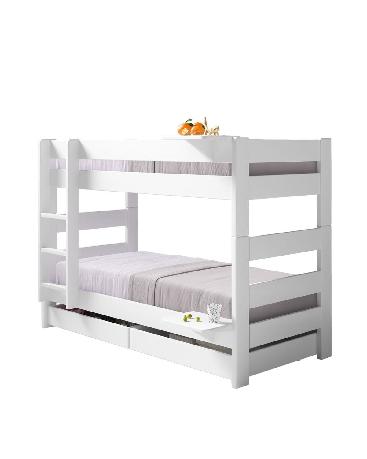 Кровать для двоих детей с удобными ящиками значительно экономит пространство.