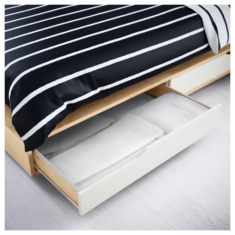 Каркас укрепляется при помощи крепких болтов, а потому основание кровати не позволит просесть матрасу даже при значительной нагрузке. Однако металл не слишком приятен при прикосновении, а модели из него не оснащены встроенными местами для хранения.
