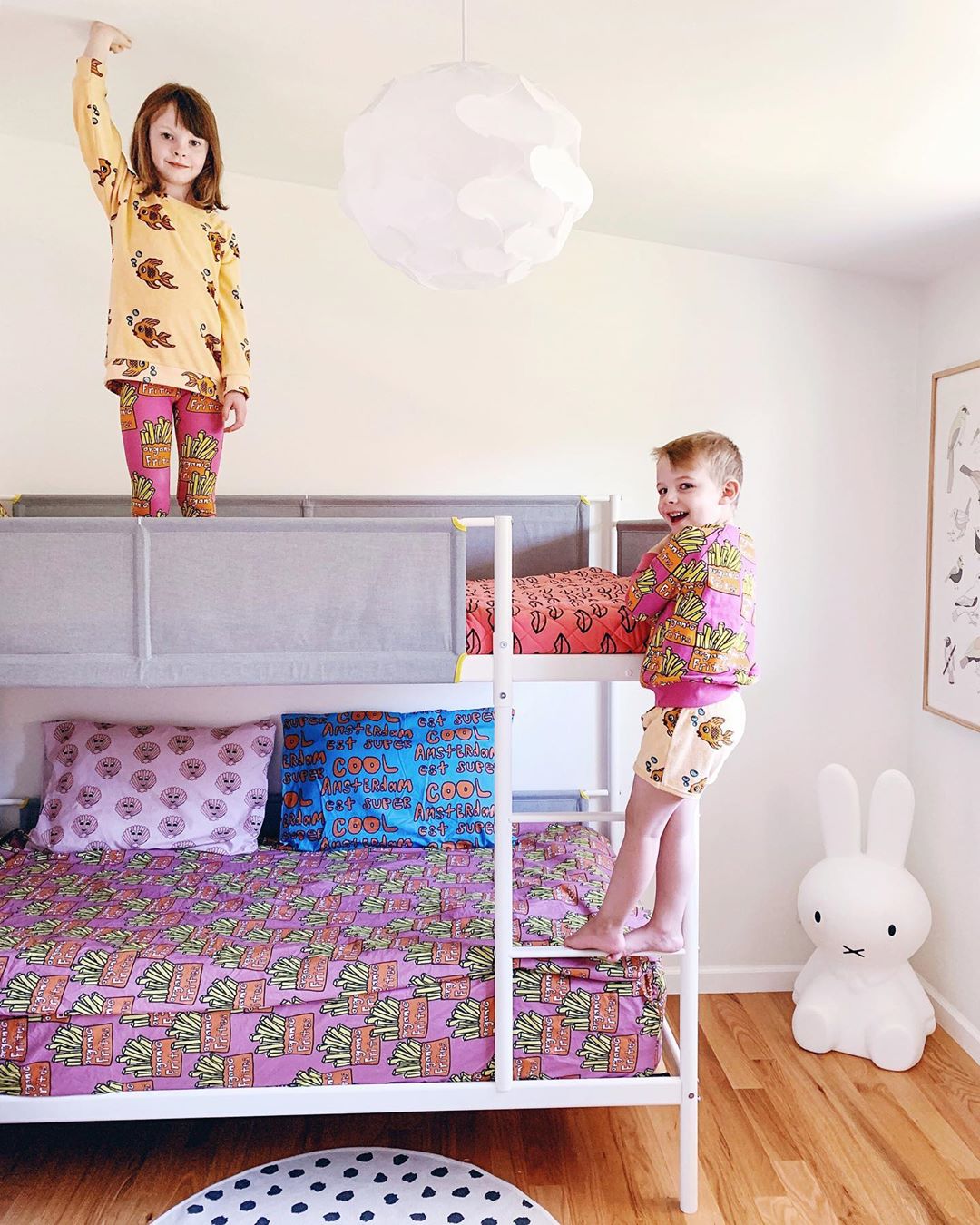 Удачный пример двухуровневой кровати для разнополых детей.