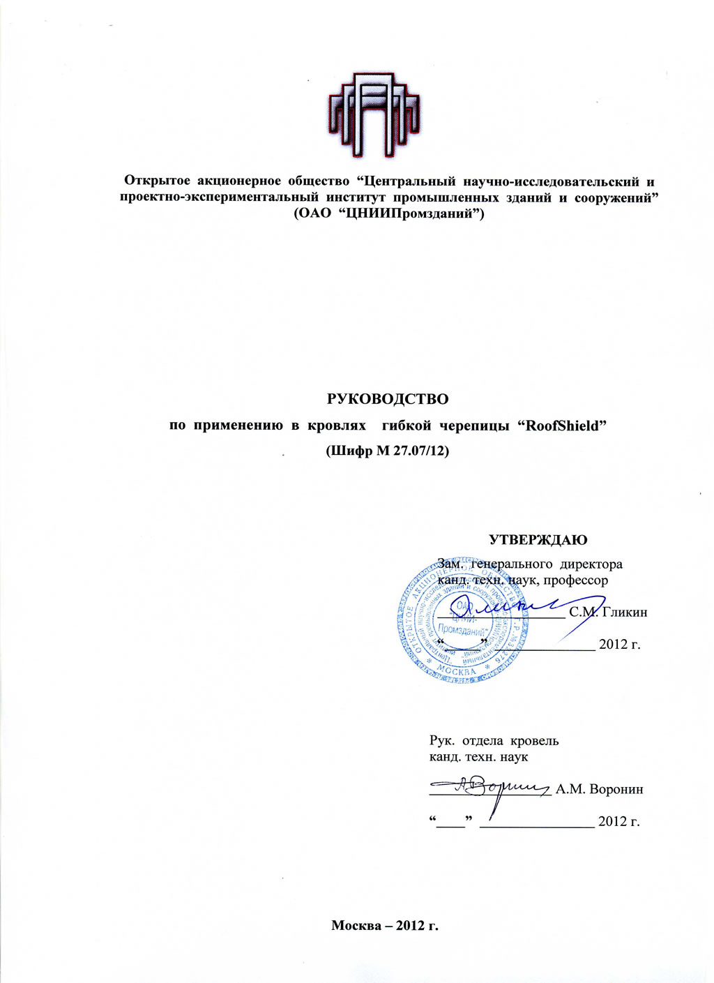 Руководство содержит рекомендации, необходимые для проектирования и выполнения скатных кровель с применением кровельного материала – гибкой черепицы “RооfShield” производства ЗАО «Многоотраслевая производственная компания «КРЗ».