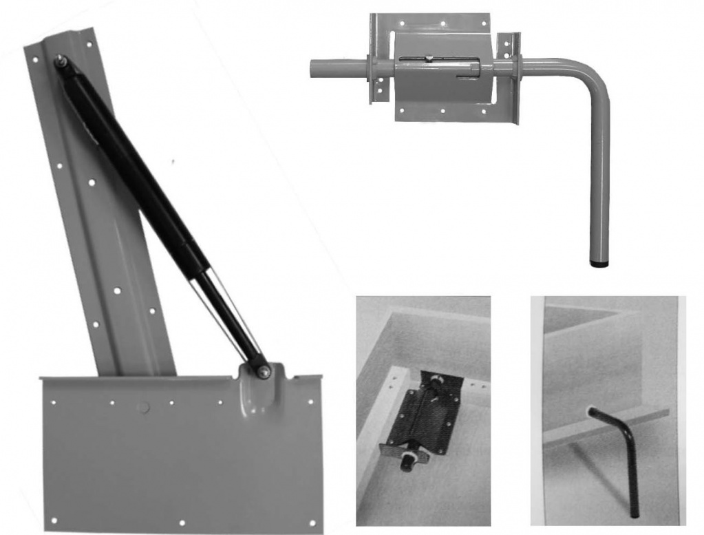 Открывает и закрывает кровать специальный механизм, он же скрепляет её короб с ортопедическим основанием и матрасом или спальным местом. По своему типу они бывают: