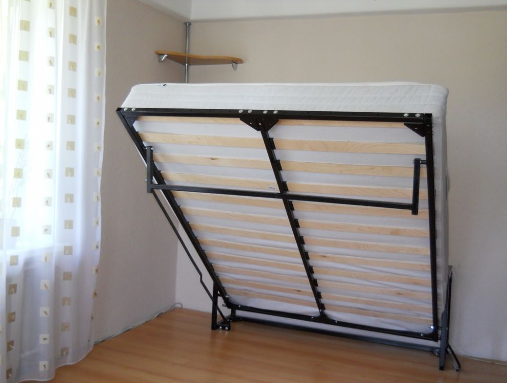 Механизм подъема матраса во многом зависит от типа кровати. Если эта кровать стационарная, то, скорее всего, она имеет подъемный механизм Victoria, для чего используются газовые амортизаторы или винтовые пружинные устройства. Для встроенных кроватей используется шарнирный механизм, конструкция которого может отличаться в зависимости от направления складывания.