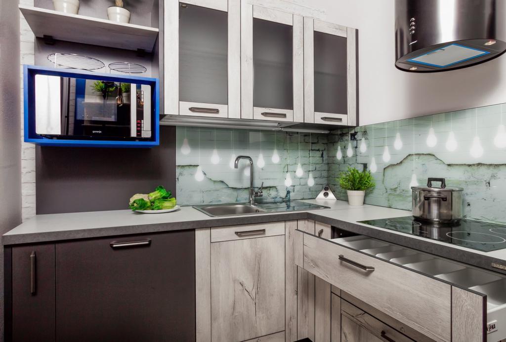 Еще одним идеальным с практической точки зрения вариантом является составление кухни из отдельных готовых модулей. Модуль — это один элемент гарнитура, например шкафчик.