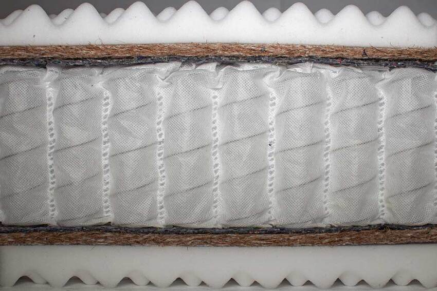 Беспружинный матрас высокой жесткости состоит из трех слоев натуральной кокосовой койры. Он будет оказывать максимально возможную поддержку для спины.
