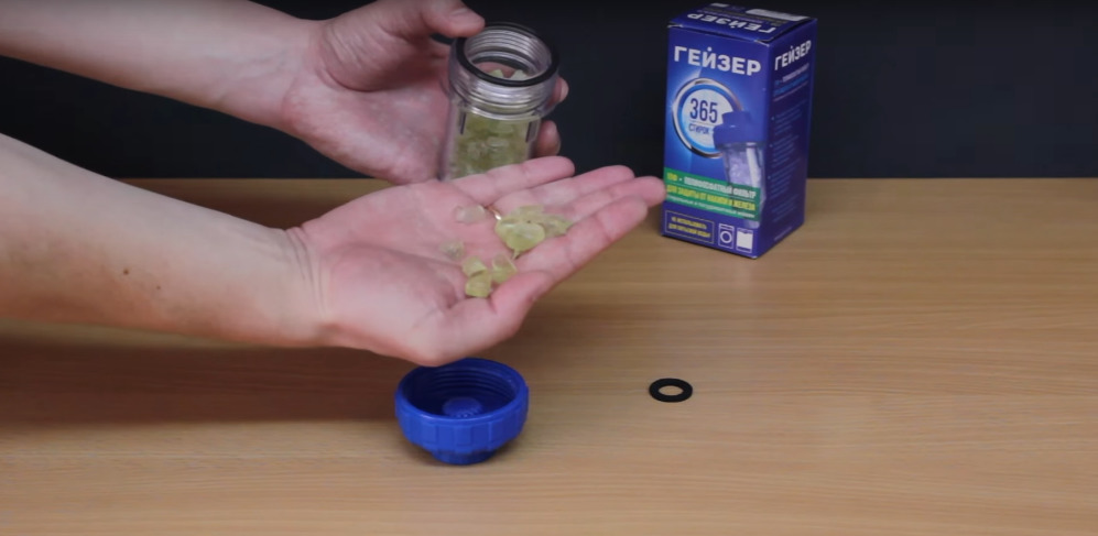 При прохождении через его наполнитель – полифосфат натрия, вода освобождается от примесей, которые приводят к образованию накипи.