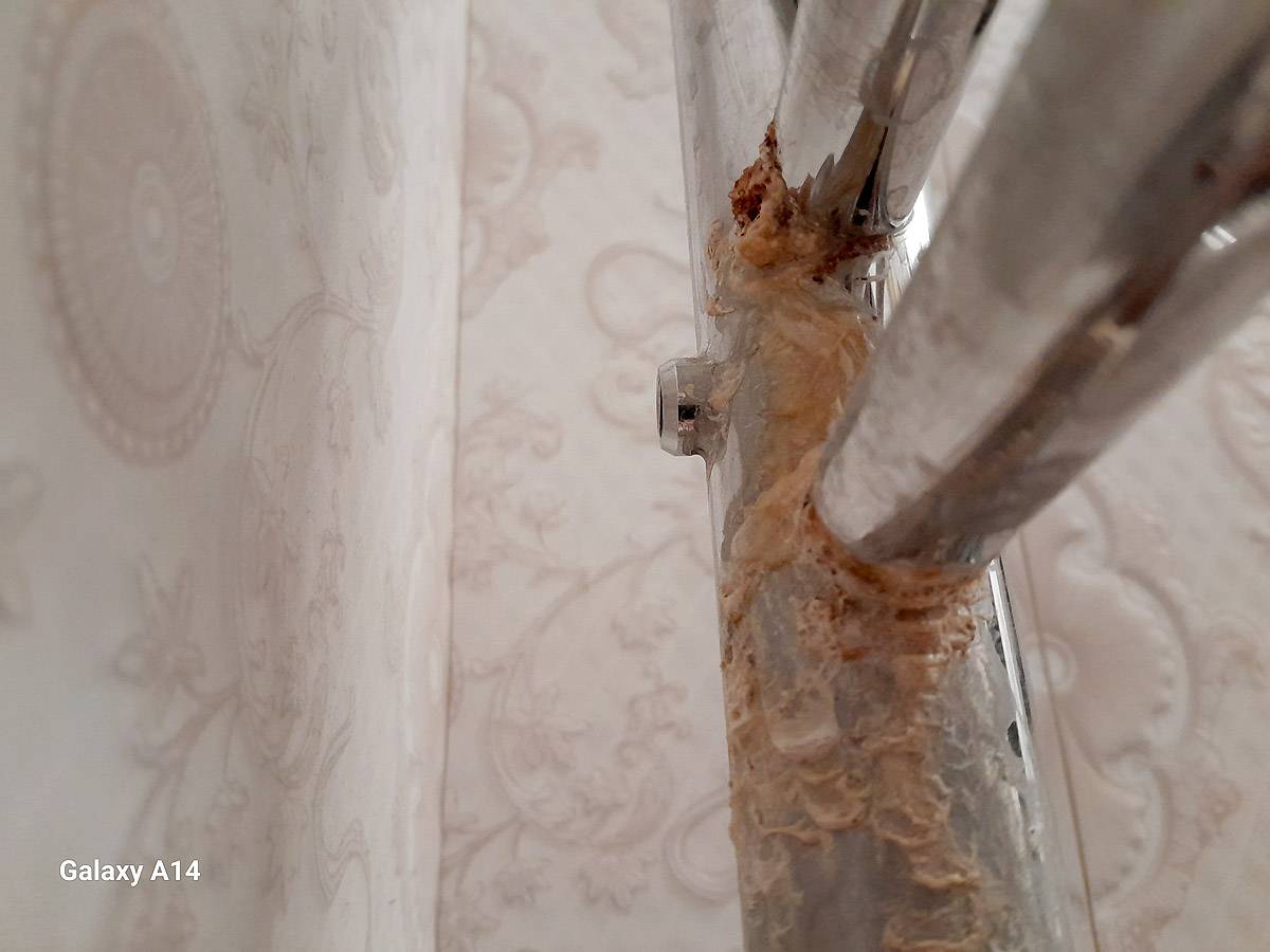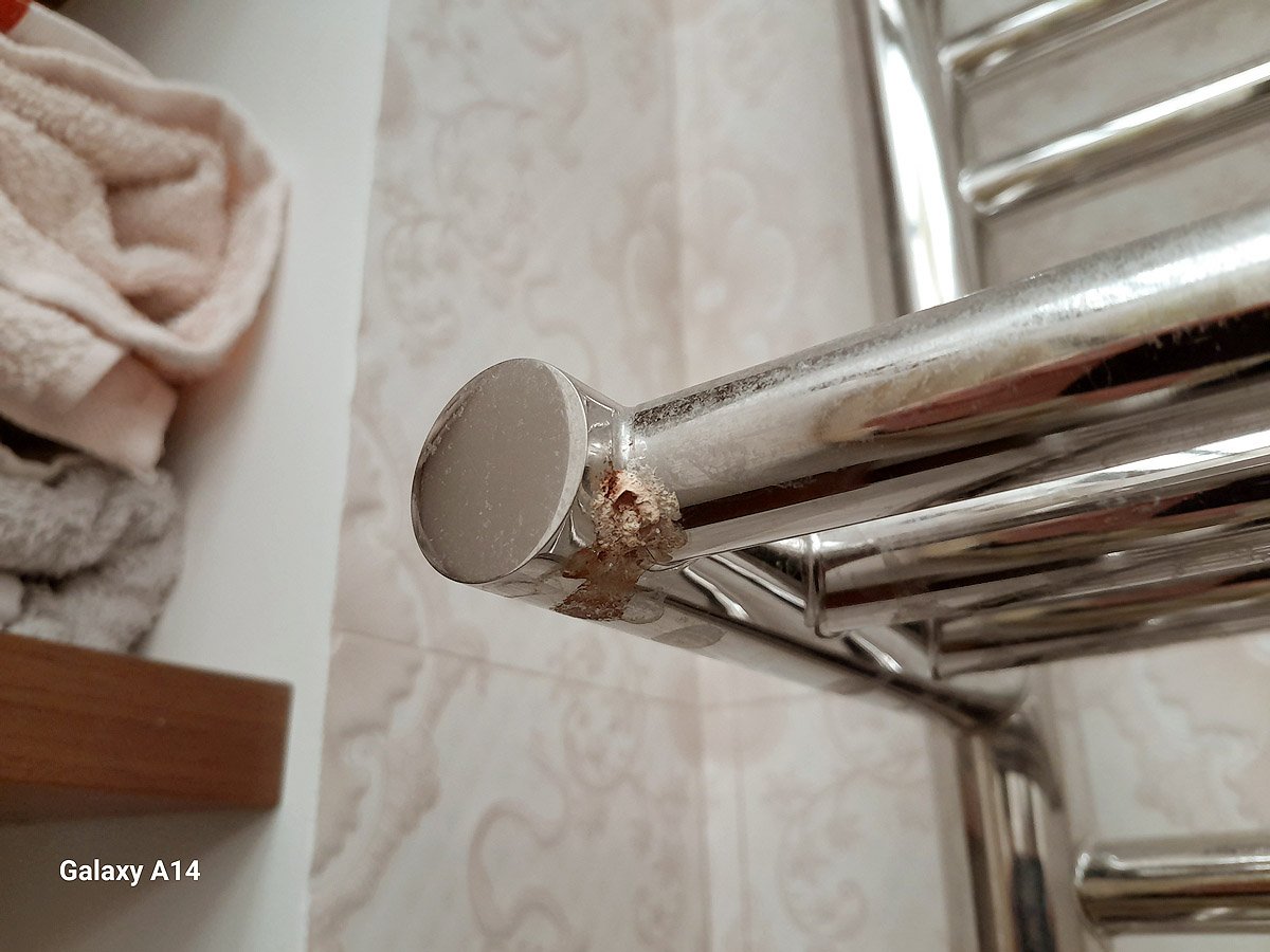 же очаги коррозии. Они возникли в других местах на полотенцесушителе, но точно такие же и тоже в местах сварки.