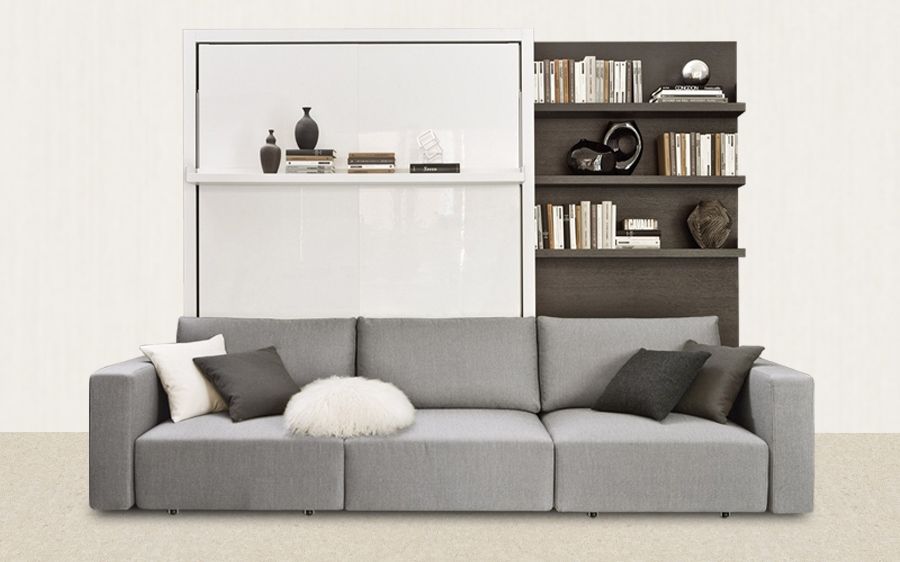 - Откидная кровать-трансформер с диваном. Отлично подходит для студий и однокомнатных квартир.
