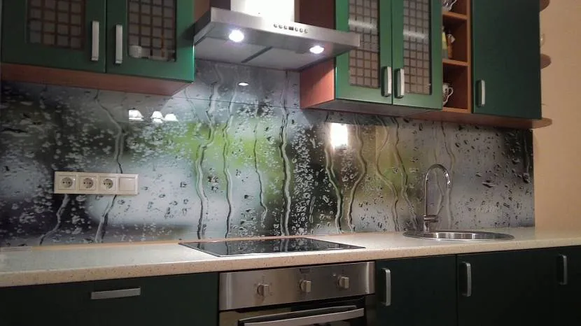 Преимуществом стекла станет его установка уже после полной отделки кухни, так что красивое завершение ремонта совпадет с завершением монтажных работ, и можно будет начинать пользоваться домашним пищеблоком. Сам процесс займет час-полтора, что значительно быстрее отделки плиткой.