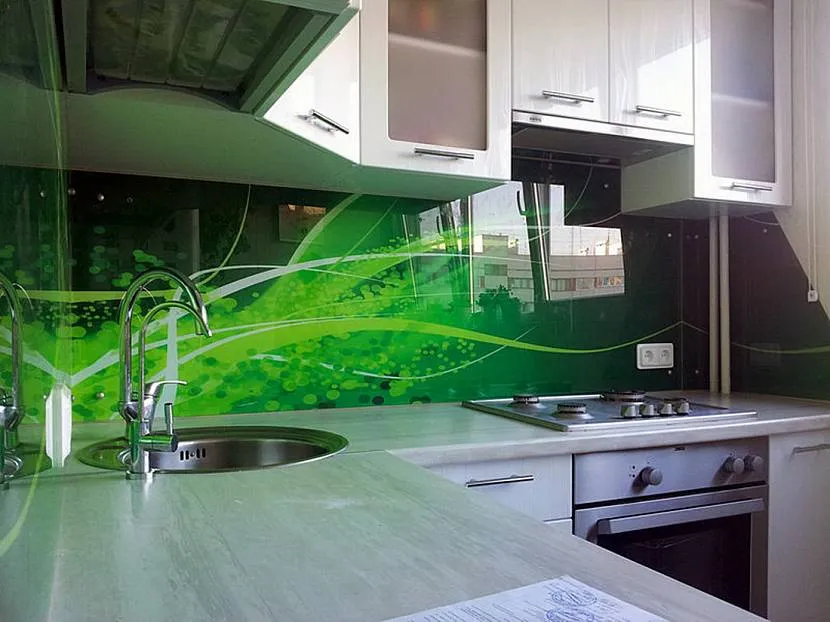 Какие рисунки и цвета можно применять при обустройстве стеклянного фартука