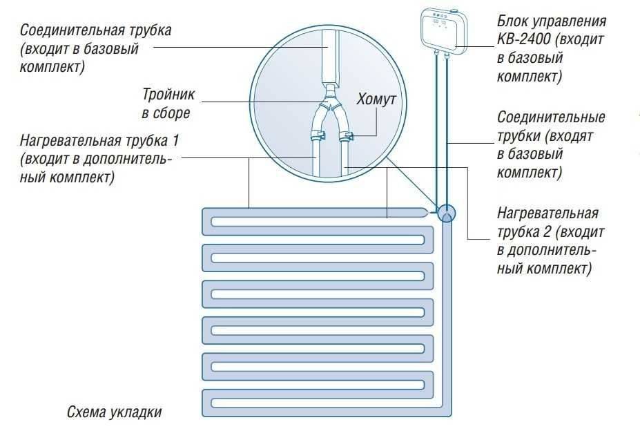 Комплектация моделей стандарта. Она включает в себя нагревательные элементы, Провода для подключения к терморегулятору, гофрированную трубку для монтажа датчика температуры и соединительный комплект. Последний предназначен для выполнения монтажа — с его помощью соединяются электрические кабели на поворотных узлах.