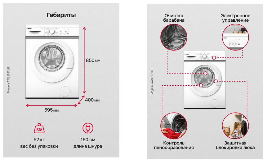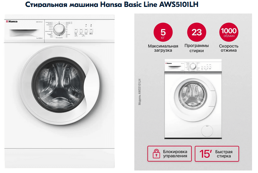 - во-вторых, широкий функционал, некоторые модели машинок имеют до 23 режимов стирки и функций, например, машинка Hansa AWB 508LR;