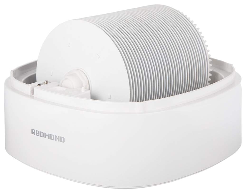 Прибор Redmond оснащен фильтром и нагревателем. Первый очищает воду и увеличивает работу греющего элемента. Накипь на поверхности появляется, но спустя более длительный период времени. Повышение влажности воздуха происходит за счет работы вентилятора с фильтром и нагревателя. Под действием высокой температуры вода испаряется и через носик подается в комнату.