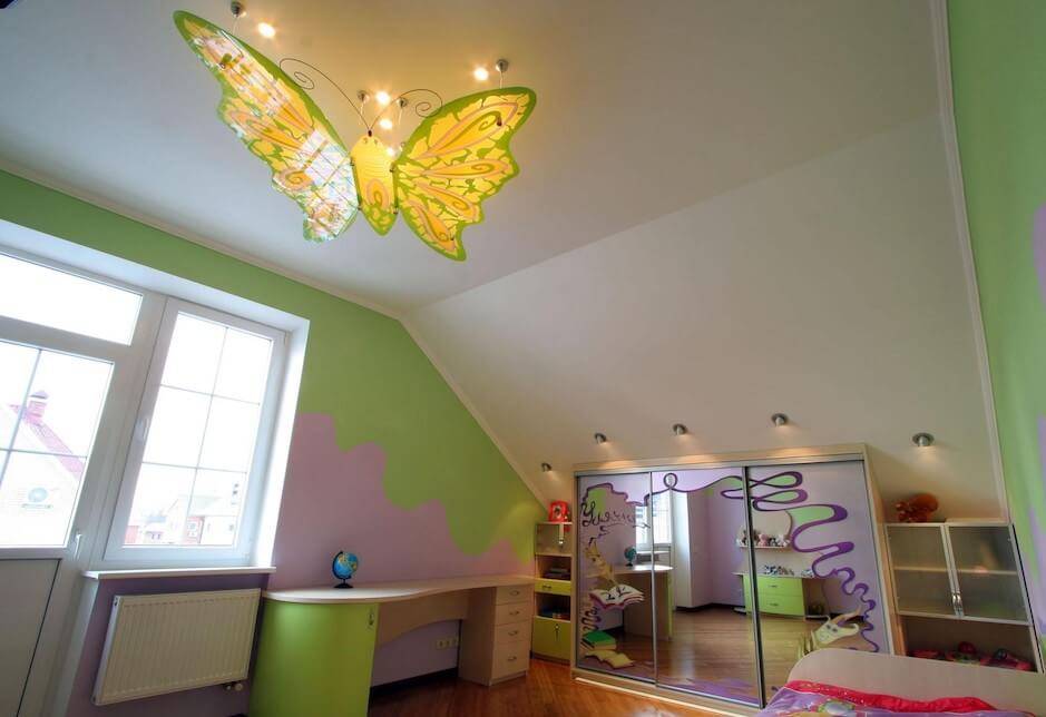 Если дети маленькие, то не стоит ставить в детскую глянцевую пленку. Ее состав не хуже структуры матовой или сатиновой пленки, но в ней отражается все. Малыш может испугаться, увидев в потолке отражение проезжающей машины, пролетающей птицы или идущего мимо незнакомца.