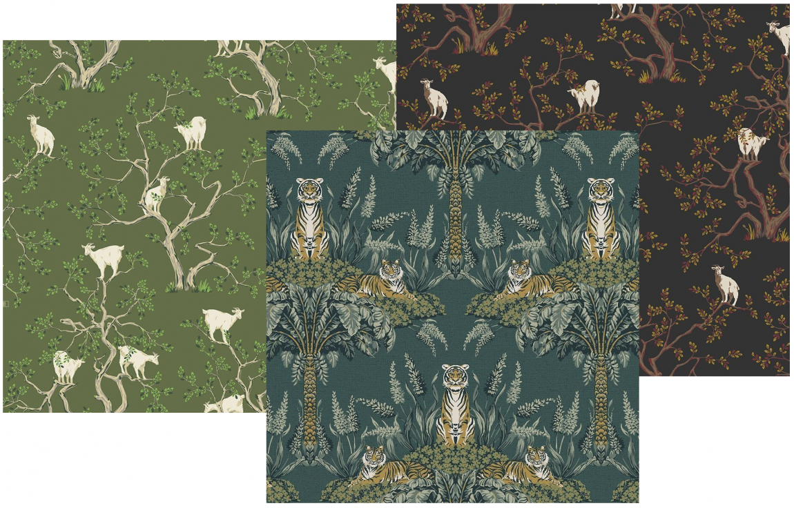 Дизайнеров вдохновляют не только млекопитающие, но и пернатые. Трендовая идея — «завести» в интерьере журавля или павлина. На обоях Loymina эти гордые птицы обитают среди флоральных мотивов в стиле шинуазри: плодоносящих гранатовых кустарников, камышей, пышных пионов и цветущей сливы, на тёмном, золотистом или небесном фоне.