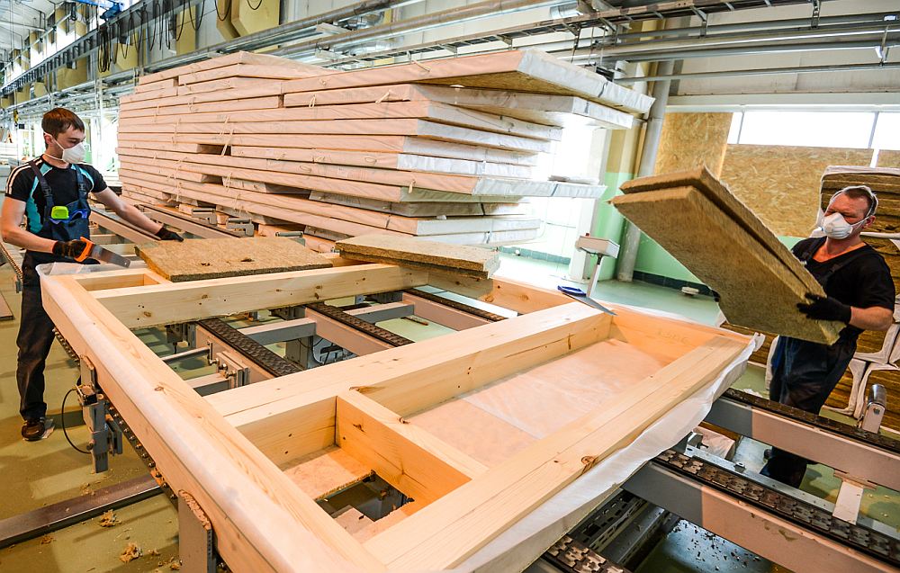 На месте остается только собрать готовые элементы каркаса и проверить их надежность. Далее строители проводят внутреннюю отделку, и дом готов. Таким образом, самая трудоемкая часть работы проходит на заводе.