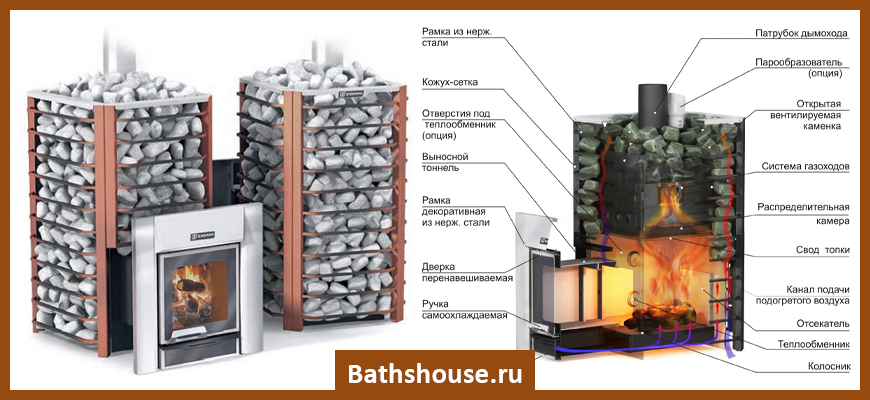 Для отопления бани используют 2 вида печи с закрытой каменкой: