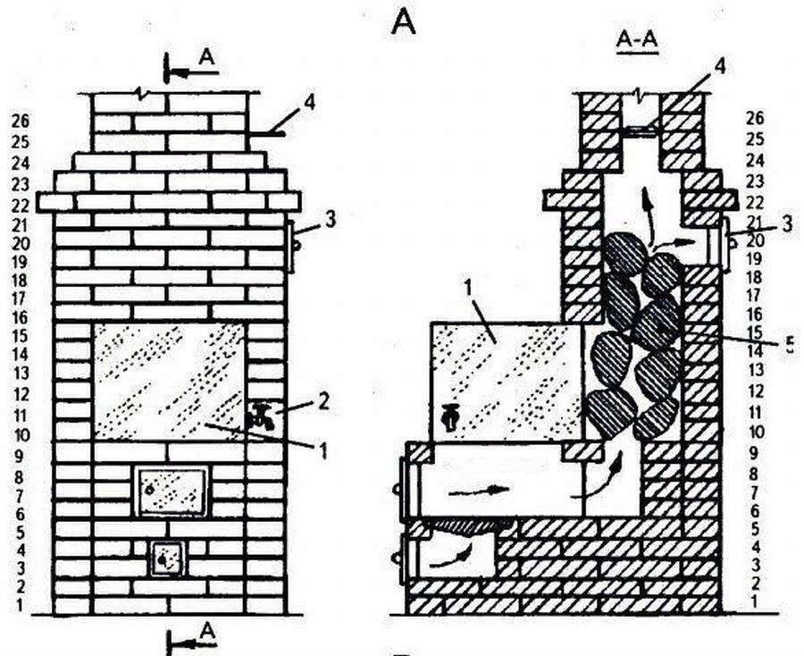Кирпичные банные печи: чертежи
