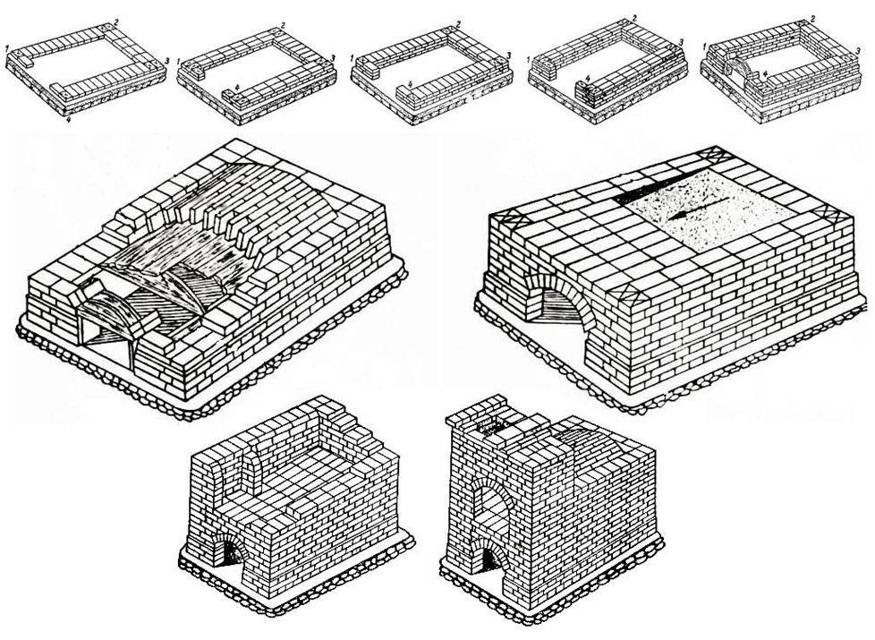 - 11-й — продолжают кладку пода, перекрывают дверки обеих топливных камер;