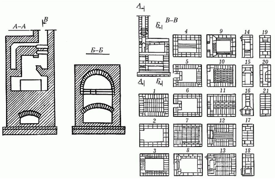 - 18-й – перекрывают шесток, в передней части свода оставляют четыре хода размером 70х120 мм;