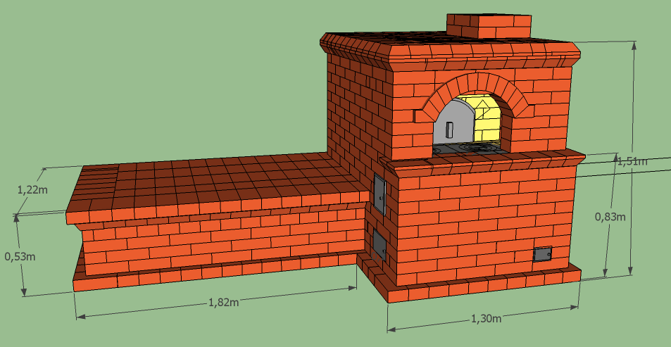 Если печь используется в основном для приготовления пищи, рекомендуется использовать минимальное количество шамотного кирпича!