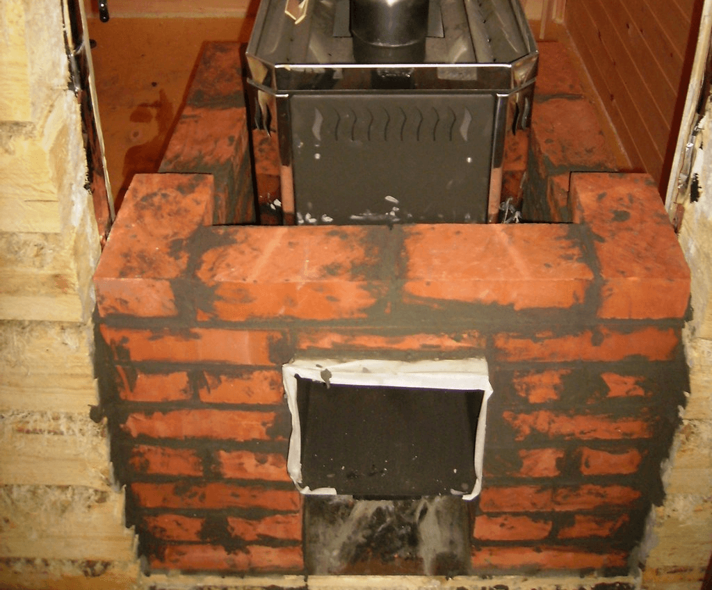 - Тело шведского отопителя испытывает высокие температурные напряжения. Поэтому топливник изнутри выкладывается шамотным (огнеупорным) камнем, а для строительства используется качественный песчано-глиняный раствор с добавлением мертеля.