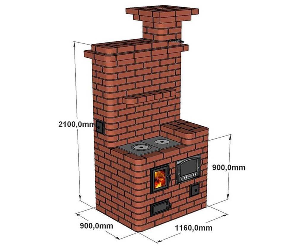 К печам этого типа предъявляют особые требования. С одной стороны, она должна эффективно накапливать тепло в толще кирпичной кладки, с другой — забирать значительную часть теплоты на нагрев варочной поверхности. В летнее время, когда отопление дома не требуется, варочная плита должна быстро прогреваться при экономном расходе топлива.