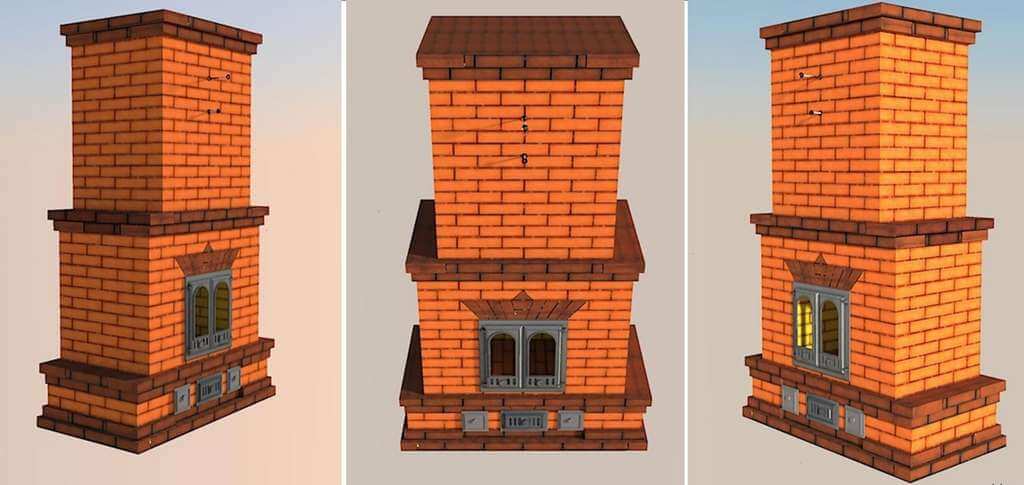 - «Шведку» можно дополнить камином – построить его со стороны отопительного щитка, организовав отдельные дымоходы. Вариант второй: каминная топка со своим газоходом выводится в общую трубу, но топится при неработающей печке.