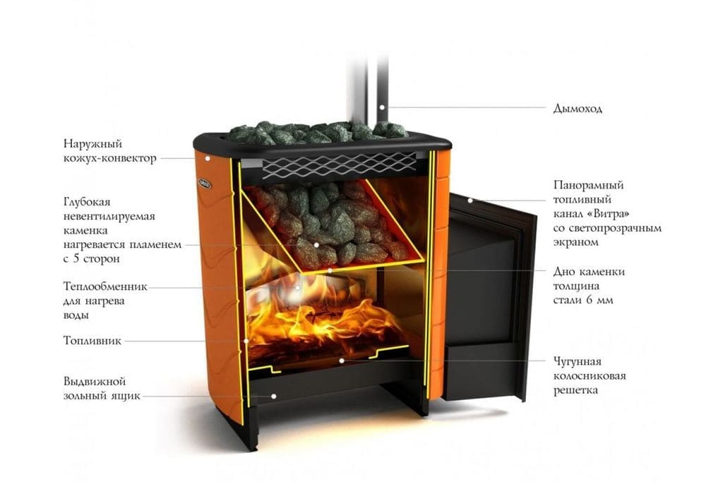 Особенно актуальны дровяные печи в регионах с регулярными перебоями поставок электричества или же газа. Но установив подобную печь, в свою парилку, стоит учитывать, что, прогрев помещения осуществляется не быстро. Время прогрева составляет около 3 часов, и только после этого вы сможете отдохнуть расслабиться и получить удовольствие. После нагрева, необходимо регулярно подкидывать топливо в топку, чтобы поддерживать нужную температуру, и желательно очистить зольник, от накопившихся остатков дров.
