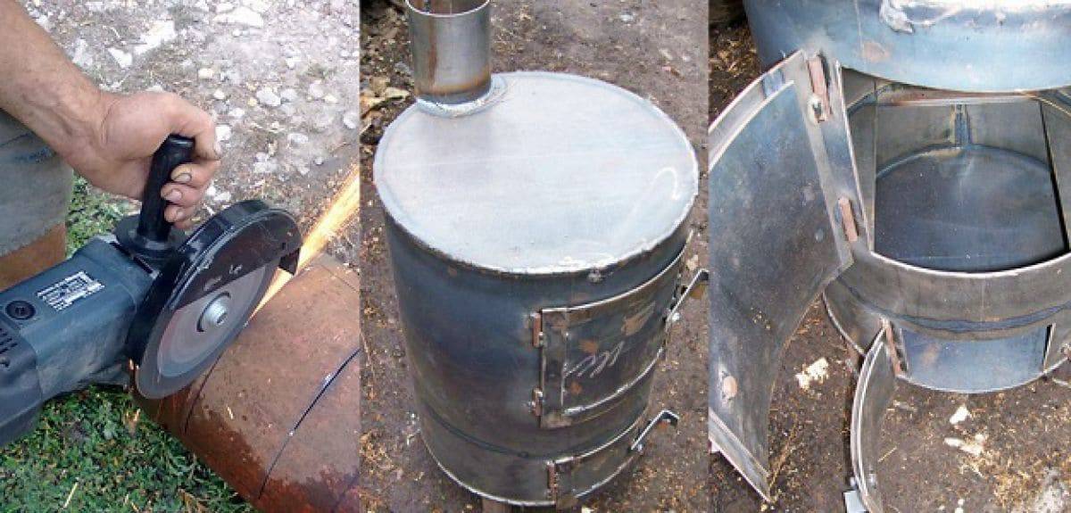 - изготавливают дверцы для поддувала, каменки и топки. Их лучше вырезать из куска трубы, но можно вырезать и из листовой стали. Приваривают покупные петли, защелку. Петли приваривают к корпусу;