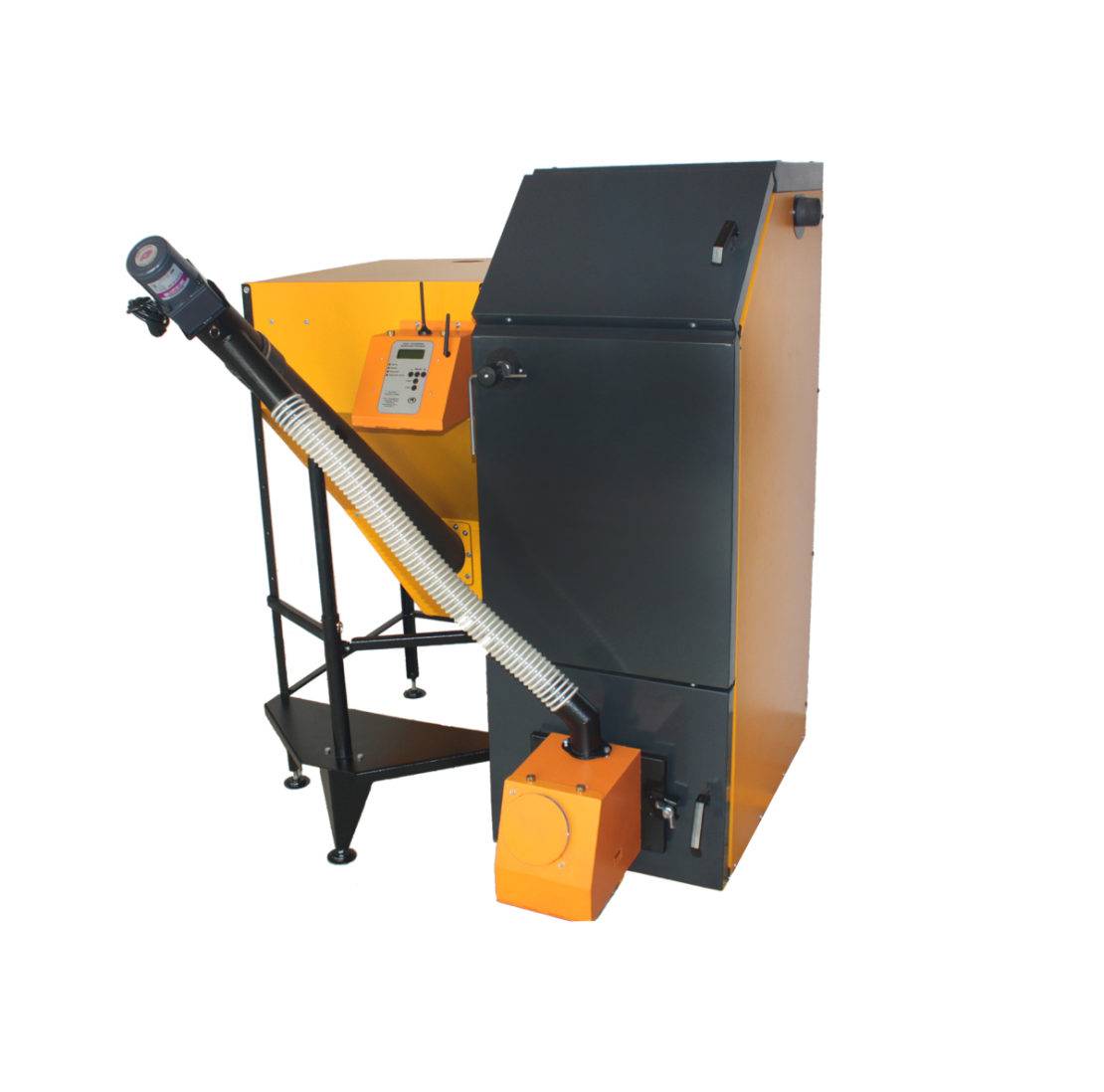 Пеллетный котел представляет собой отопительный прибор в виде конструкции, изготовленной из листовой стали. В оборудовании объединяется несколько механизмов одновременно: