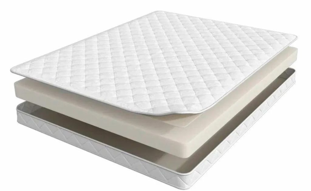 Беспружинный матрас не содержит витков проволоки внутри. Он становится мягким за счет наполнителя. Это может быть натуральный латекс, пенополиуретан (искусственный латекс) обычный и с эффектом памяти, кокосовая койра и другие материалы.