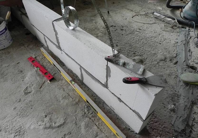 Монтаж перегородки из пеноблоков следует в некоторых местах армировать.