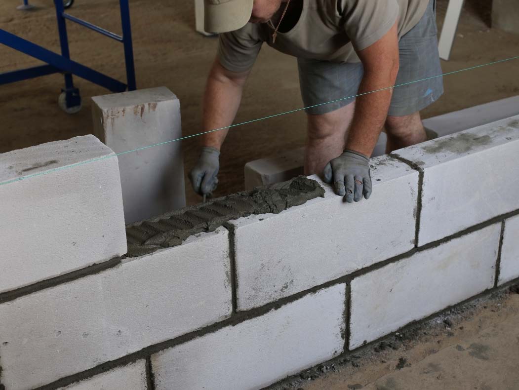 - Некачественно уложенный первый ряд приводит к отклонению от вертикальности, что недопустимо не только для стен здания, но и для перегородок из пенобетона.