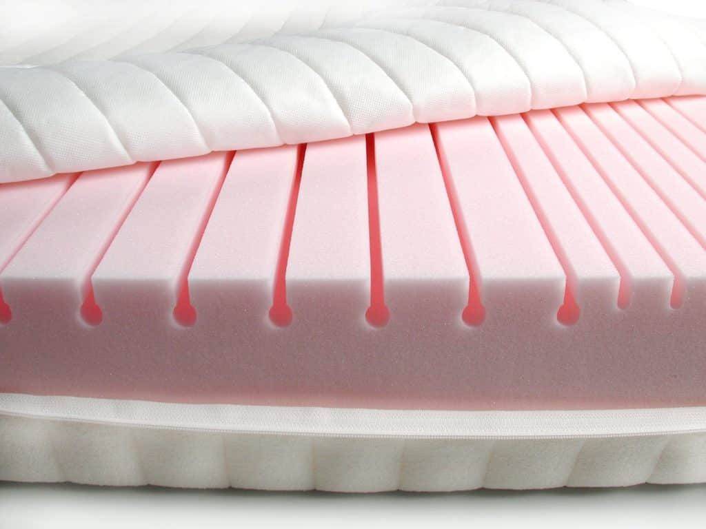 - Пенополиуретан. Прекрасно сохраняет форму, при этом является достаточно мягким. Гипоаллергенный материал, который не впитывает запахи и пыль. Долговечен в эксплуатации.